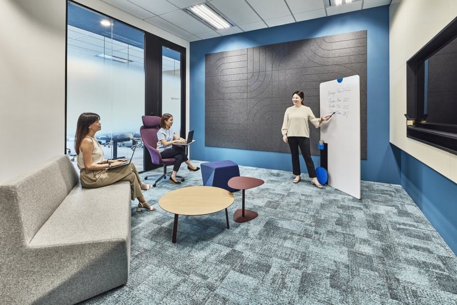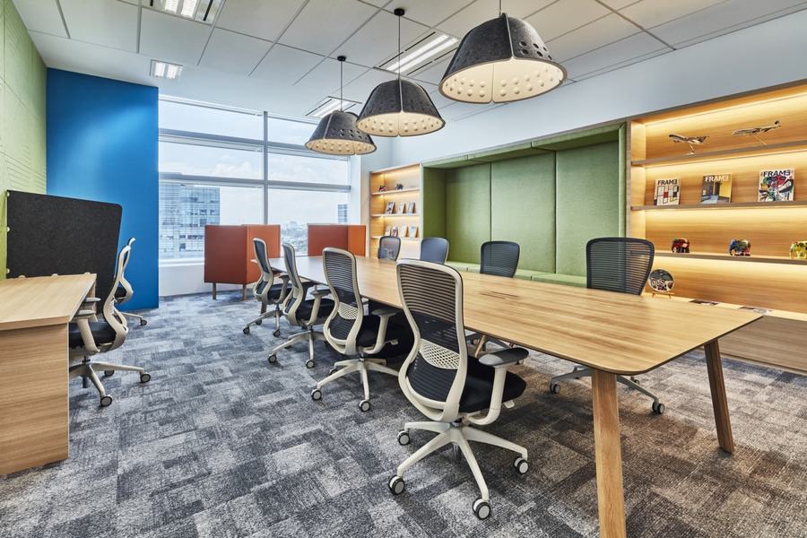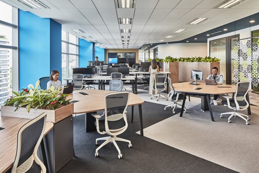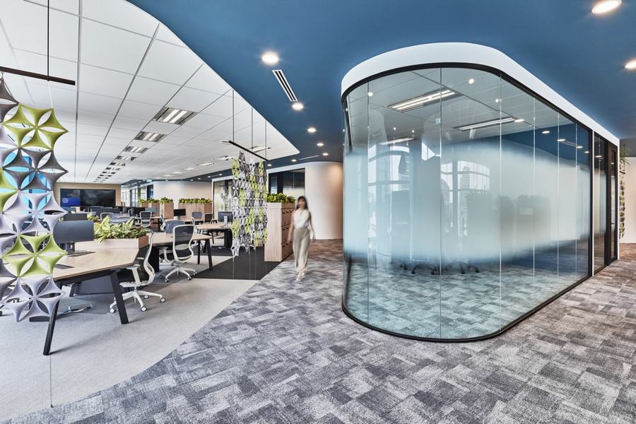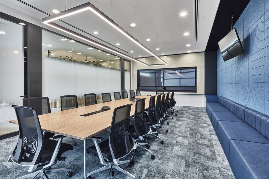 在这里,灵活性是关键。这就解释了为什么没有专门的办公桌给员工,只有专门的区域(或者在商业室内设计中我们称之为“社区”)给各个部门。通过这样做,我们可以确保员工在需要与财务或人力资源部门的同事交谈时仍然知道该去哪里。