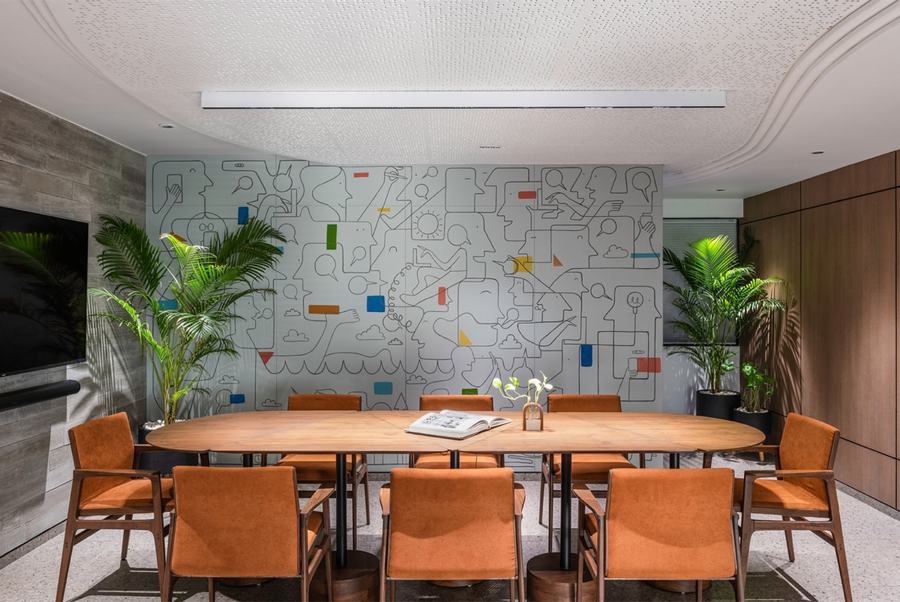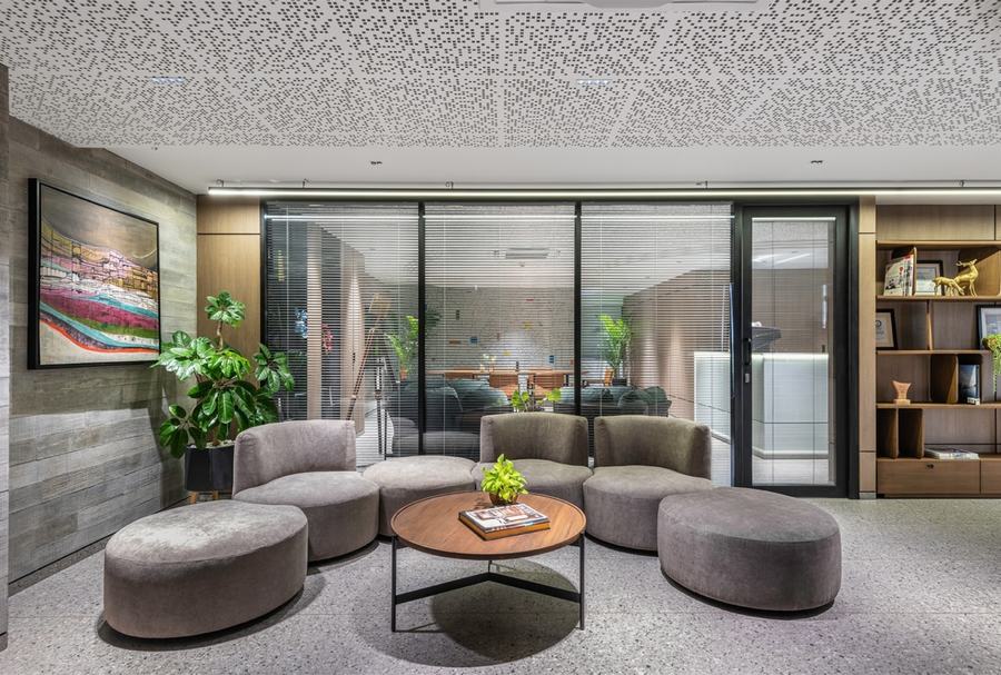 根据客户提供的简报,该空间由三个主舱区域共享,供三兄弟共同使用,他们相信“共同创业者工作空间”的思想——一个让企业家共同“成长”的工作娱乐空间。这个想法是为了促进办公空间内的日常生活和生活方式。因此,室内设计回应了当代的观点,即设计本质上是协作的空间,而不是隔间的设置。挑战在于在单一楼层内为不同的活动创造多功能空间,并通过情境声学设计减少噪音反射。