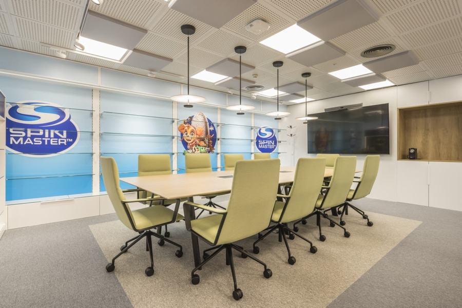 Spin Master 向客户展示其产品的陈列室占据了很大一部分面积。由于我们在零售领域的经验,这个空间被设计成办公室内的商店。在这家商店内,我们还有一张大型会议桌,Spin Master 在销售活动期间关闭其合同。
