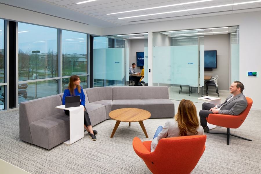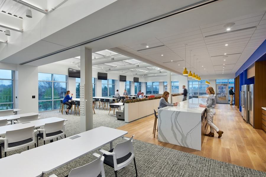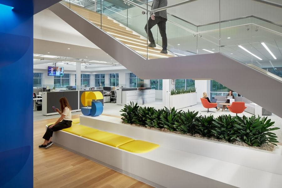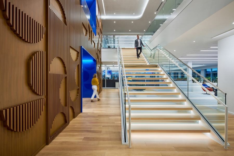在全球大流行期间构思和执行,员工的健康、舒适和安全是设计过程中的首要考虑因素。指定了显着增强的 HVAC 功能和高质量的空气过滤系统,以帮助减少病毒和细菌的传播。在开放式办公区域,符合人体工程学的工作站的间距符合健康和安全建议。特别注意所有会议室的视频会议,以确保全球所有 1,200 名员工的连通性。