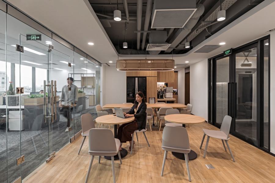 ADP-Architects在办公室体现了公司的核心价值,通过热情、专业的外观,以公司的里程碑和使命为特色,创造了一个加强客户信任的空间。在确保高质量工作站提高生产力的同时,ADP在一个多功能区域内设计了一个客户服务柜台,可以灵活地改造为接待客户或举办公司的活动。