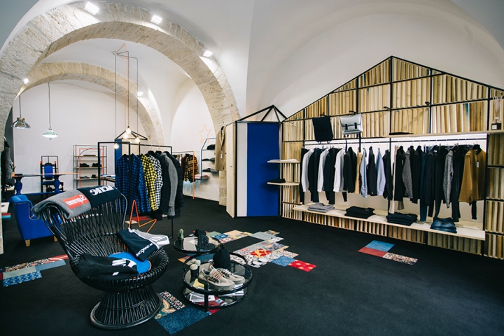 Romeo N168品牌男装店设计 2015 年 11 月 15 日 罗密欧N168是男装店位于adelfia附近的一个小镇,巴里。商店提供了一个广泛的品牌选择,从经典到休闲街,一个显着的态度研究。室内设计提供了一个舒适的和不寻常的空间,在一个典型的石头墙房子。黑色的地毯被污染的样品得到其他地毯多色和不规则的图案。展览解决方案从区域到区域的变化,以创建一个动态的和灵活的空间。天然杨木,铁和掺有玻璃是在该项目中使用的材料,结合旧的恢复元素,以创建原始的想法在家具。黑色,克莱因蓝色和荧光橙是选择的颜色来定义品牌在商店的视觉识别。 店铺设计服装店设计男装专卖店设计 You Might Also Like 网红芝士挞品牌BAKE CHEESE TART日本新店,灵感来源火山和地形 2020 年 9 月 16 日 MSGM服装店设计-米兰新店开业 2019 年 10 月 13 日 这家韩国零售商把自己的店改造成商品展示画廊 2020 年 3 月 22 日