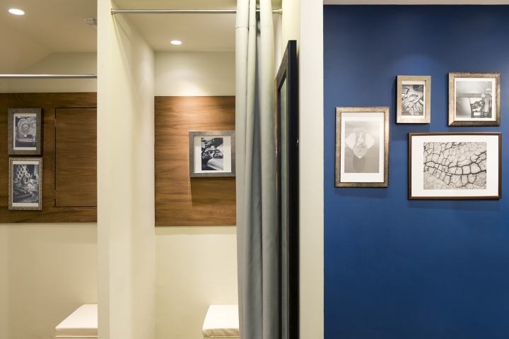 所有的家具和设备的布置和遵循简单、直线,结合胡桃木和皇家空军的蓝色间隔,带一点奢华米色的整体环境温馨的色彩。所选择的材料和所选择的颜色,以有助于最好的展示的产品的品牌。