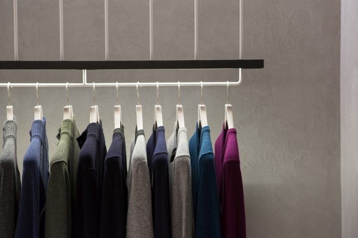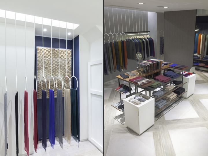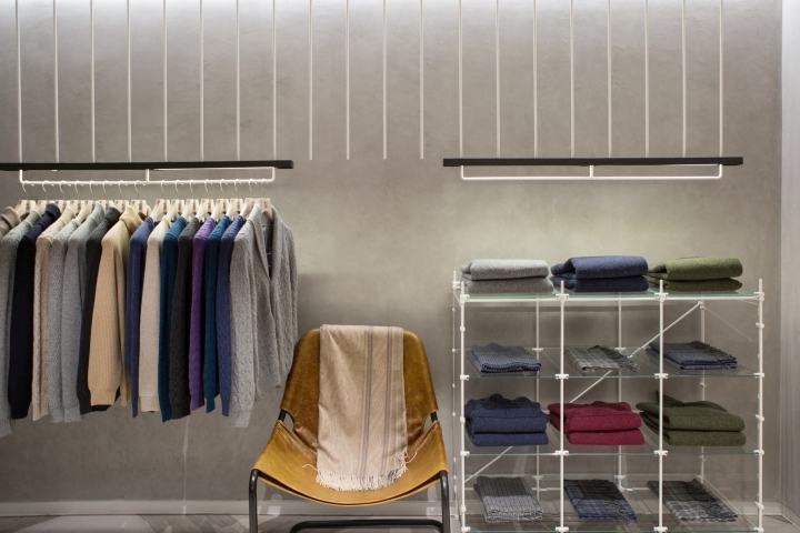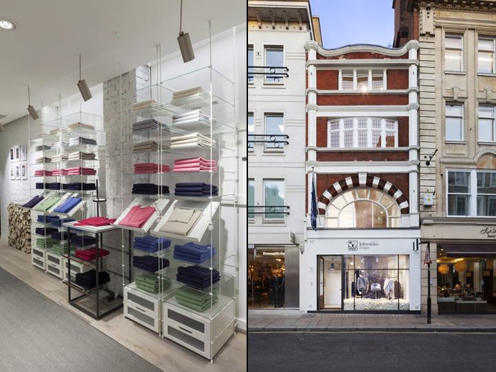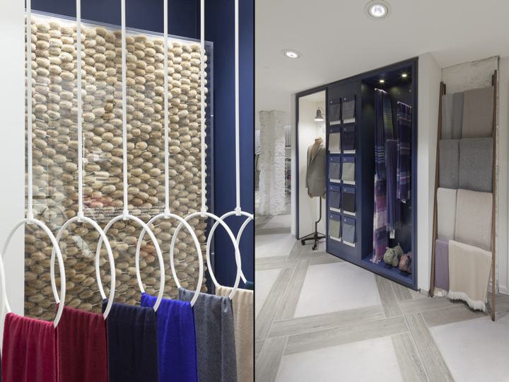 作为一家生产针织和梭织羊绒和细羊毛,从纤维到成品超过200年,其工艺和埃尔金的纺织品约翰斯顿精神为我们的概念提供了灵感;这是庆祝通过当代的店面设计,借鉴了它们的出处和遗产的品牌和其作为一个标签提出了客户与传统经典作品与扭曲的定位。