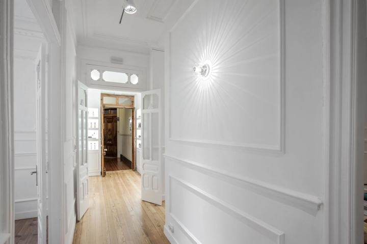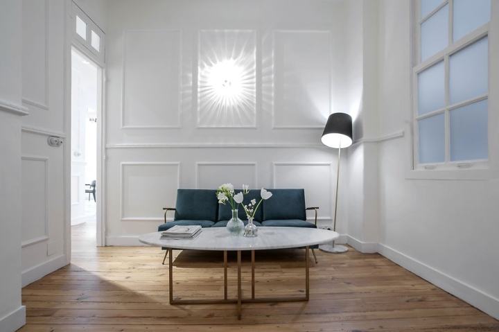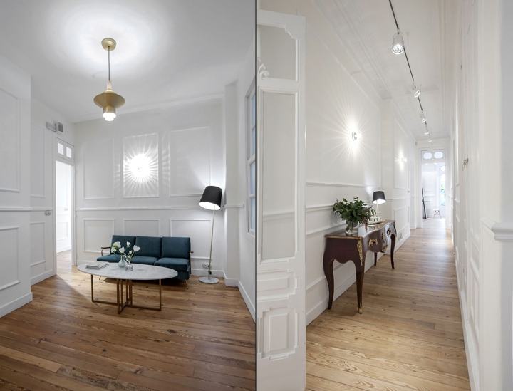 运用落地玻璃窗配搭框围建筑细网状铺面,当光源穿过玻璃漫入空间中,能随着日照方向的游移,形成较富趣味的纹理变化。