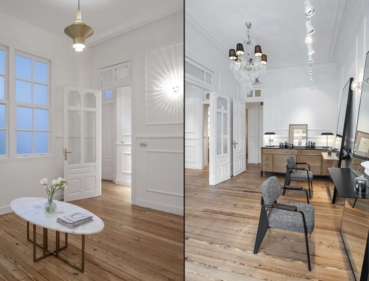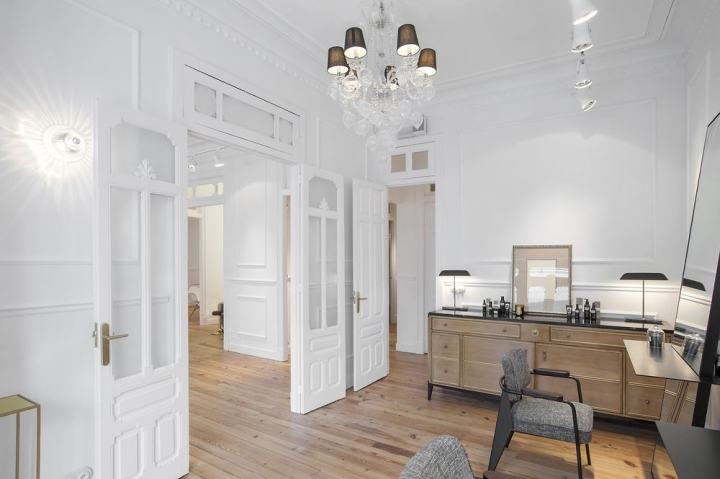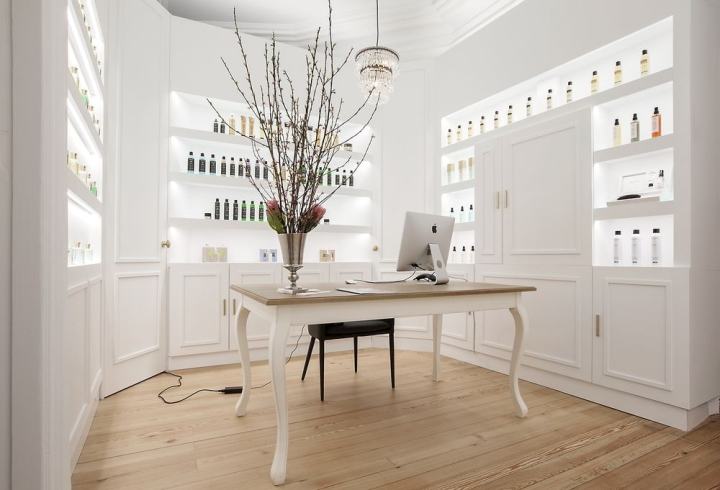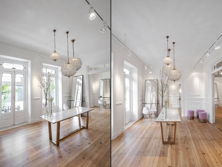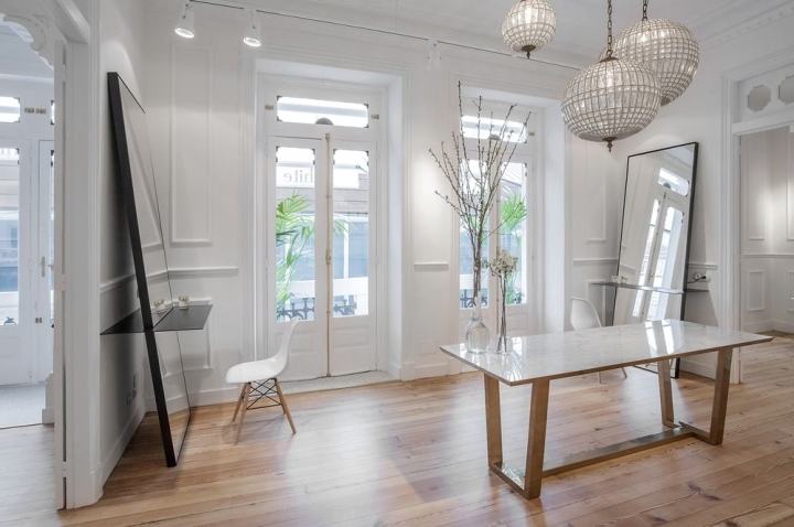 整个店面以白色色调为主,实木地板让整个空间更加温馨。欧式线条让整个空间风格更加明显。
