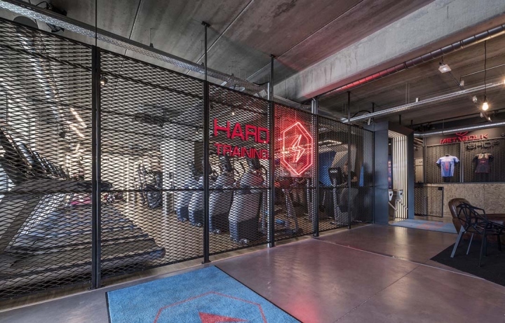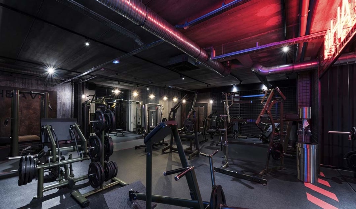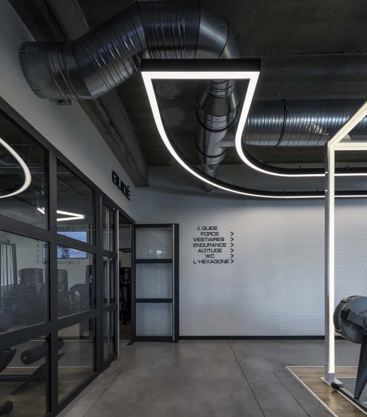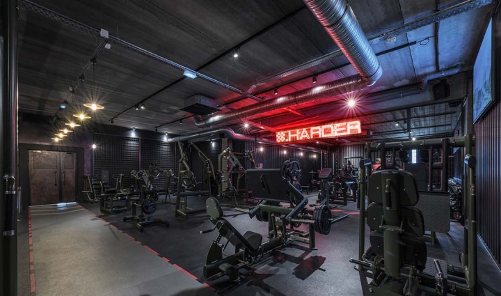 “Metabolik”是训练有素的运动员的新一代健身俱乐部,可以练习“硬训练”。每个空间的设计使培训课程是一个真正的体验,沉浸在一起。在“Force»房间里,气氛很黑,材料恢复了工业或码头区域的代码。照明集中在机器上,而在房间“移动”的氛围中放松使用橡木或解剖图案。