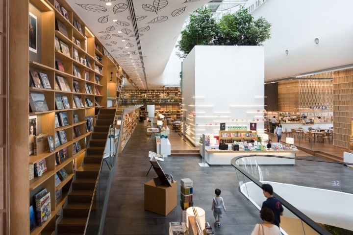 其他地方,在六个星期的时间里,天花板上已经手绘了9,600张叶子,创造了巨大的艺术作品。灵感来自中央大使馆的绿树成荫的环境(俯瞰英国使馆综合体,另一边则是绿色树梢),建筑师们提出了手绘壁画,将绿色植物置于其中。 Open House的书店不是占据一个盒子般的零售单位,而是在整个开放式屋顶的空间里铺开。一个高大的书架已经安装在空间的一端,而一个大的双高图书馆墙围绕着另一端。整合座位较小的书架分散在各处,融入酒吧和餐厅,让人们可以悠闲地浏览。