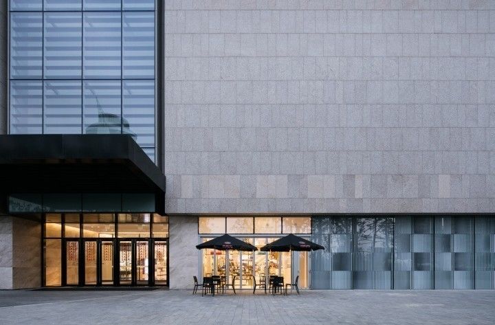 为了强调Metrocity品牌的身份,在正面的正面,安排了一个金门,Metrocity的标志安装在地板上。 此外,通过将咖啡馆“MEMEMI”分配给外观的右侧,展示了咖啡馆和时尚商店之间组合的演进品牌的方向性。