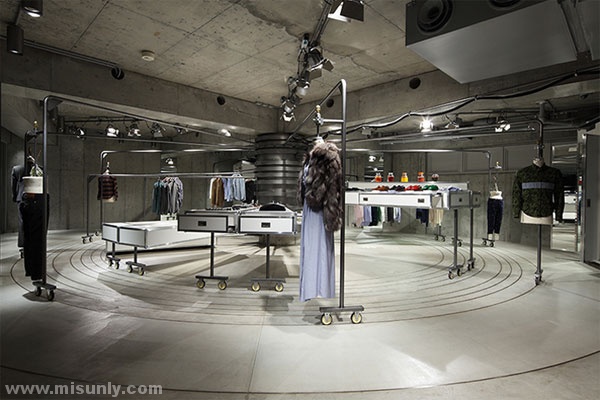 这家店的内部被设计来唤起我们的一种时尚/零售实验室的想法 – 原材料钢材和混凝土饰面与优雅的白色层压木案件平衡。主要计划是建立在一个大型现有结构柱。而不是列处理纯属障碍物,我们通过一个旋转木马,在所有作品中协同工作的想法受到启发。一个巨大的钢铁机制 – 绰号“怪物” – 被定制并制作成适合列左右,并担任主播的所有主要零售功能(并允许客户最大限度地发挥内部足迹)。…