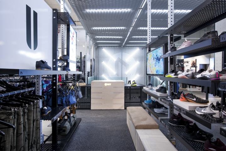 胶合板,混凝土和网眼等原材料经过精心设计和精密加工,反映了培训的历程 – 一个原始的起点,最终目标是完美的物理设计。零售空间内衬有钉墙板,可灵活轻松地进行商品推销。激光切割钢架可用于各种零售设备,用于制作一套统一的套件,从而为动态空间提供一致性。