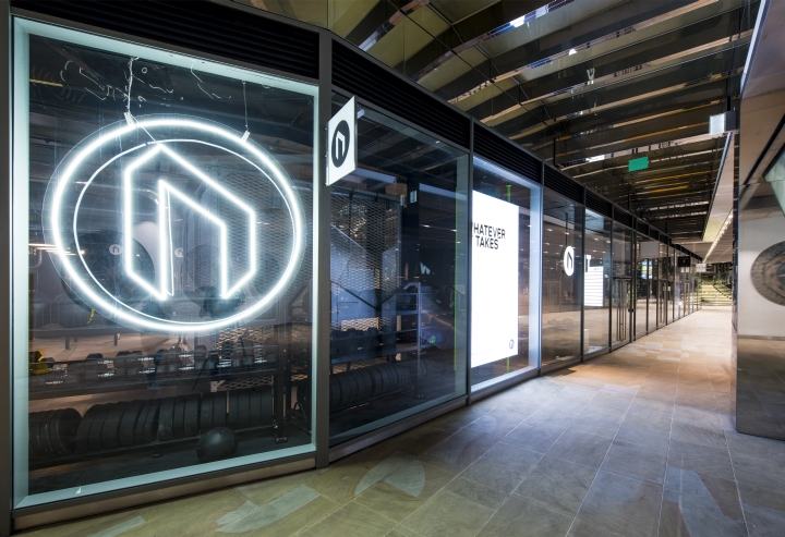 NoChintz将健身概念推向了更高层次,内部为WIT在伦敦市中心的旗舰空间。这个力量和健身健身品牌的新家于2018年1月开业,位于伦敦标志性的圣保罗大教堂的门口。 638平方米的前Superdry商店分为两层。现在位于地下的一个鼓舞人心的训练场所,这个训练场被带入底层的零售空间;零售展示耐用和鼓励锻炼使用。