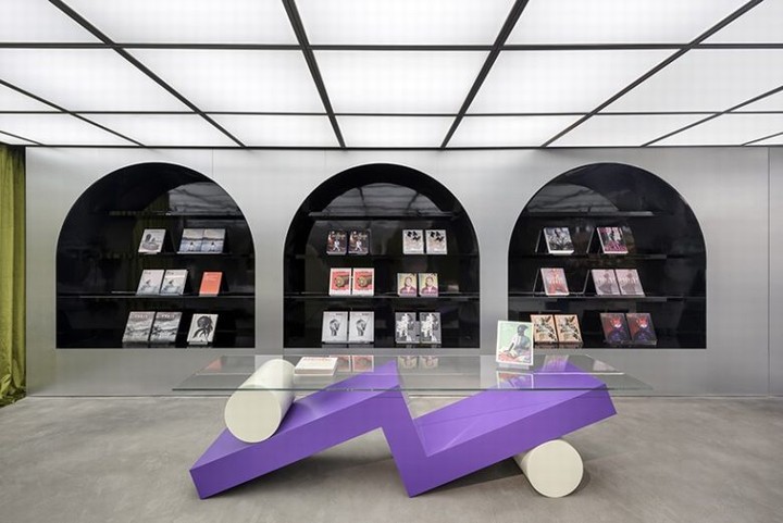 为了强化商店想象中的城市景观主题,Alberto Caiola用独立的展示点缀了空间,看起来像抽象的雕塑。他们的调色板以及令人惊讶的材料组合,赋予了后现代的优势,抵消了商店更经典的元素。