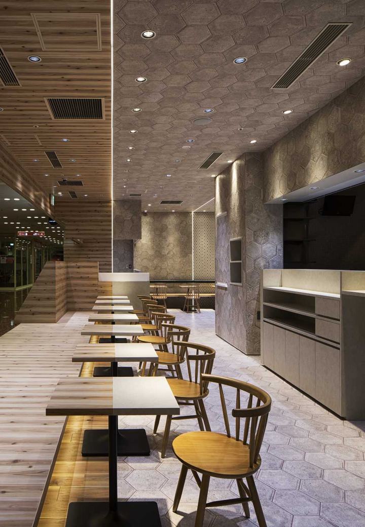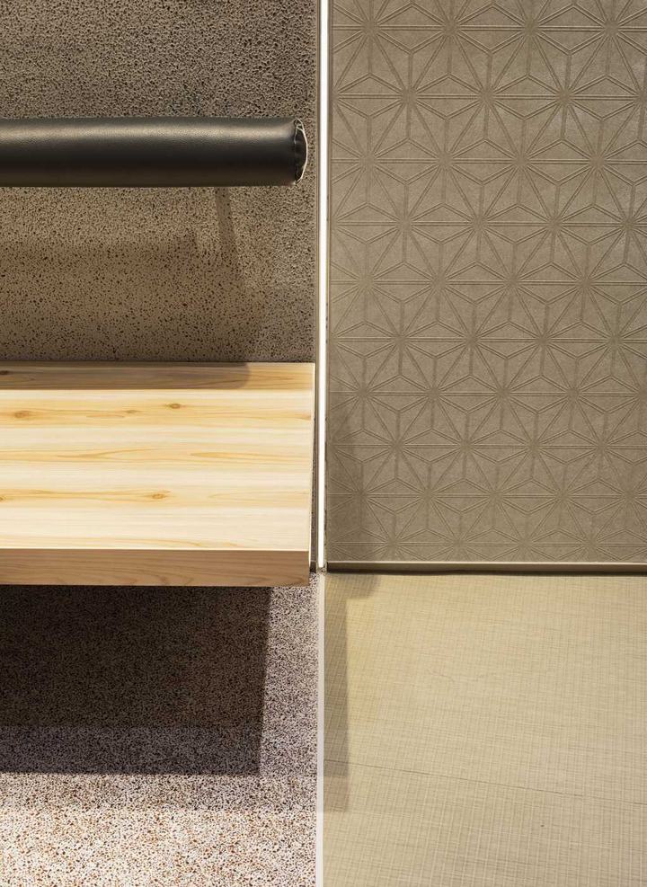 我们在设计这家店之际要融合石、木、土等传统的材料以及瓷砖、玻璃、密胺、塑料布、氯乙烯花砖、单页胶片等的现代材料,就是要倾力打造传统与现代的“和谐之美”。(吉田昌弘/KAMITOPEN一级建筑师事务所)