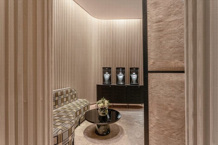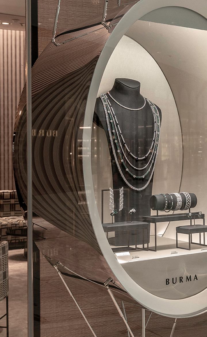 Burma boutique珠宝店设计 2018 年 11 月 29 日 全新的精品缅甸是着名的迪拜购物中心的延伸。 在约100平方米的空间内,为这个品牌开发的最初的巴黎概念店存在于完全不同的方面。 悬浮的椭圆形显示器在巨大的商店橱窗中漂亮地漂浮着。 在内部,曲线的相互作用穿着穿孔,漆面金属,从地板到天花板优雅整个精品店。 家具的哑光黑色与椭圆形展示窗口相呼应,像游客画廊一样陪伴着游客。 墙壁的起伏为空间提供了一种节奏感,并隐藏了壁龛,更多的私人空间,用于展示独特的物品,小沙龙和VIP空间。 店铺设计珠宝店设计 You Might Also Like Jordan Brand 全新三里屯World of Flight 概念店设计 2024 年 3 月 27 日 跨境电商ZIPLAB线下体验集合店,力图打造“年轻态”用户的潮红经济圈 2021 年 10 月 30 日 著名法国品牌Cartier(卡地亚)最新大阪快闪店(pop-up store) 2021 年 3 月 31 日