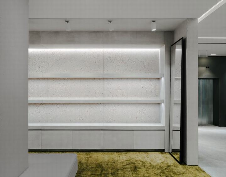 意大利Céline服装商店设计 2018 年 12 月 4 日 Al-Jawad Pike为米兰和罗马的Céline设计了一套商店,引入了奇点和单片的新材料概念。该设计被认为是一种“精致的原始主义”,旨在将建筑与雕塑融为一体。整个地使用浅色混凝土的基础材料,将空间的体验集中在铸造和雕刻,实心和空洞的主题上。这些主题通过在地板和雕刻的壁龛中暴露珍贵的彩色石块来加强。这个空间的设计旨在与周围百货商店的视觉超载形成鲜明对比,创造一种平静的材料和空间方法,使产品能够站在游客体验的最前沿。 店铺设计服装店设计男装专卖店设计男装店装修 You Might Also Like 新锐内衣品牌Bananain蕉内首家概念店,科技与秩序的完美融合 2021 年 3 月 15 日 Best Company服装展厅设计 2019 年 2 月 18 日 Louis Vuitton最新东京男士专卖店设计,黄色演绎lv独特的轻时尚 2020 年 7 月 7 日