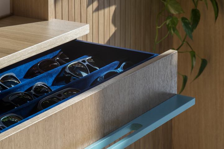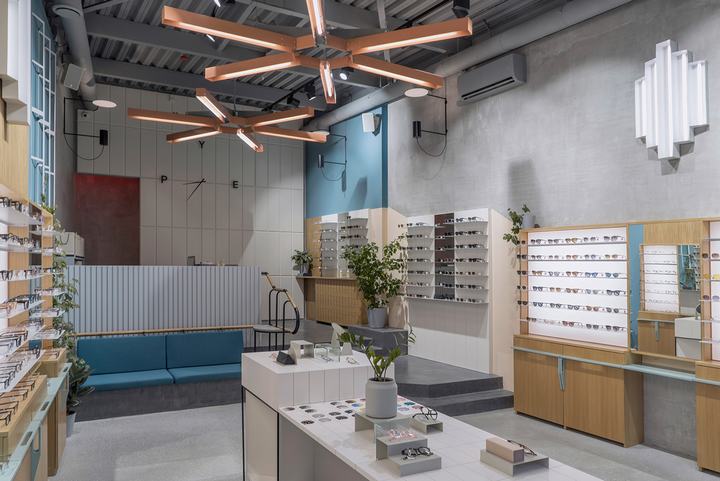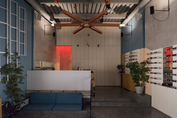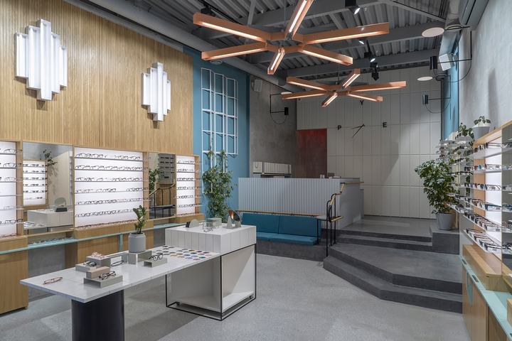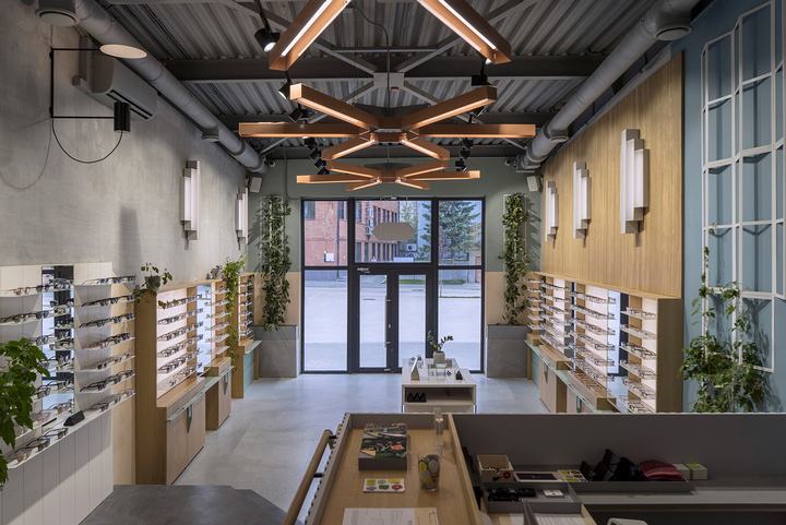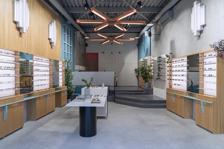 新的PYE光学商店位于一家前烘焙工厂的领土上,该工厂于1934年至2015年全面运营。工厂是建构主义风格的典型代表,其主要目标是保持新内饰的风格。地板,商店的颜色调色板(指苏联疗养院),带有时钟和灯具形状的巨大米色面板 – 一切都是苏联时代的温柔提醒。
