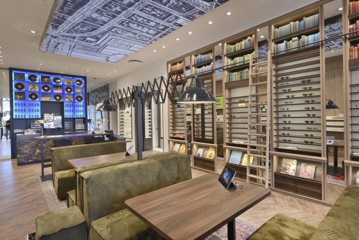 利用狭窄的单元,已经安装了悬挂的垂直移动显示系统。结果,店员和顾客开始使用店铺前沿的公共走廊的一部分在商店空间中流通,模糊了商店和公共空间之间的界限。与工业般的美学一致,墙壁采用原始的白色色调,并与抛光混凝土地板搭配。家具稀疏而低调,仅包括木材销售柜台和搁架以及由编织钢制成的座椅。