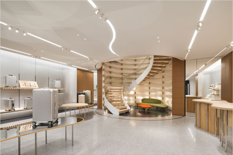 该商店面积为877平方米。 (9,440平方英尺),位于一栋现代化的八层楼建筑的两层,与Chuo Dori并排,距离Ginza Six购物中心仅一箭之遥。室内设计低调,巧妙地嵌入了传统的日本文化和工艺,如木材的使用,最值得注意的是,螺旋楼梯和展示的背景灵感来自篮子编织。底层展示了Rimowa铝合金系列的手提箱和展示架,并展示了一层楼,其他物品和聚碳酸酯系列产品以及配件。二楼还设有服务台和全面的维修服务。地点:Rimowa,7-9-17 Ginza(Ginza)。
