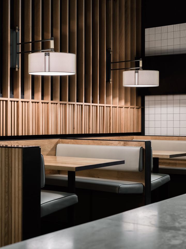 创造各种空间品质同样重要,以便为客户提供多种体验和用餐选择。照明和装饰方案也考虑了这些变化,以便始终提供足够的规模。