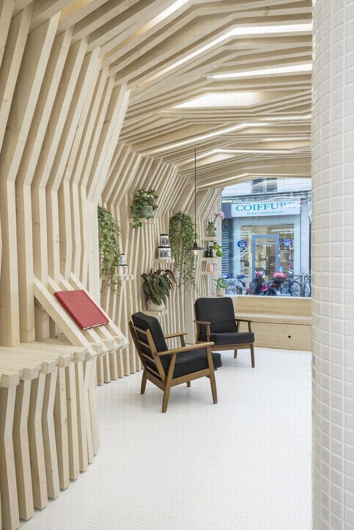 Joshua Florquin建筑事务所设计了Les Dada East,一个位于巴黎市中心巴士底附近的头发和造型沙龙。意大利创始人Edoardo Seghi委托设计师创造室内设计和概念,与沙龙使用的意大利生态风格品牌保持一致。这个空间不仅仅是一家美发沙龙,还举办艺术展览和展览等文化活动。
