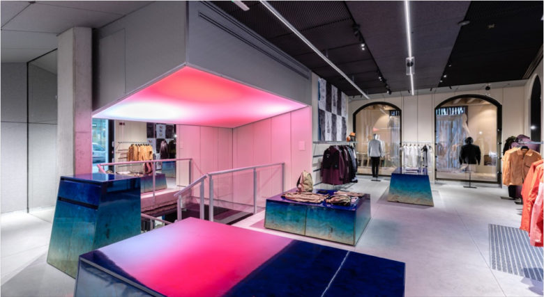 一系列厚重的显示器覆盖着渐变色涂层,一个悬挂的灯箱显示了包括C.P.公司的季节性调色板在内的日夜循环的色彩,引发了色彩的流行。有趣的是,我们已经努力创造出一个隔音的零售环境,让购物者远离外面的喧嚣,完全沉浸在体验中。新的C.P.公司商店除了在专用区域提供定制服务外,还提供该品牌最新系列的男装。称为定制颜色,该品牌的标志性项目的选择可以定制任何潘通色。请注意,这项服务甚至还提供与C.P.公司的服装匹配的任何首选色调。