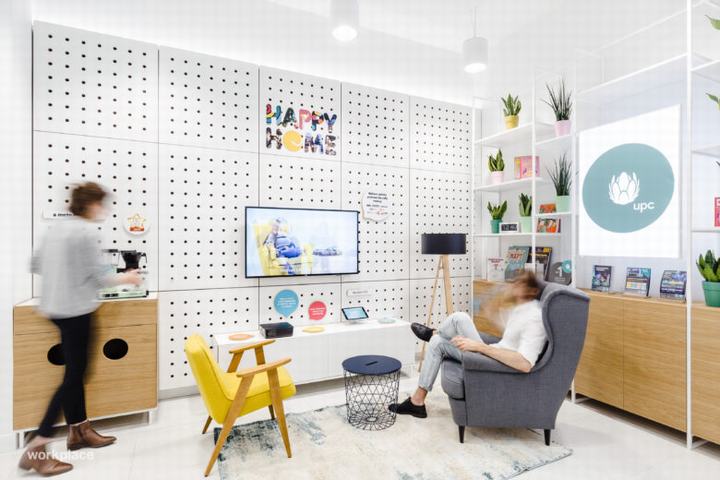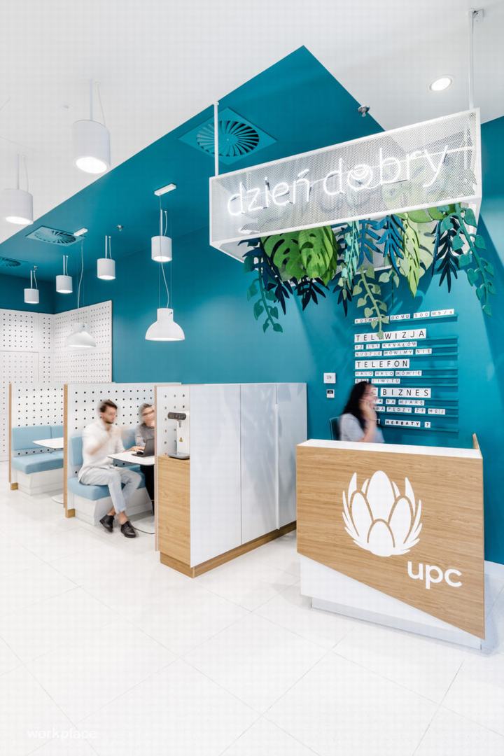 该概念是对现代销售模式的重新定义。 这个空间提供了更广泛的经验,并将公司的品牌转化为身心印象。 UPC展厅根据用户的需求进行整体设计。 这个空间是普遍的,适合老一代和年轻一代。 该概念非常灵活,可以在不同形状和尺寸的表面上实施。 它可以在更私密的氛围中实现快速站立的互动和更长的服务 – 隔音的L形食客可以建立更加协作的客户 – 员工关系。 通过穿孔面板,员工可以轻松改变产品的曝光度。 在“休息室”,您可以探索UPC服务,甚至喝杯茶。
