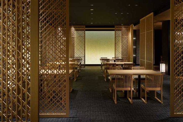 位于鹿儿岛的历史悠久的旅馆“野鹤亭”的大厅,使用能使人联想到“数寄屋造(日本建筑样式之一。融入数寄屋风格的住宅样式。语源的“数寄”是喜好和歌、茶道或花道等风雅之事,“数寄屋”是“任凭喜好建造的家”,成为茶室之意。)”的格子状屏风来分隔或调节室内空间的大小。