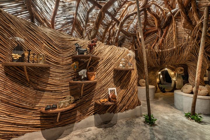 这座由玛雅工匠用尤卡坦半岛的木材建造的建筑,如Jiles和Bejuco,唤起了精品店所在的周围丛林。这些过程恢复了当地的材料和技术,发现了该地区自然、文化和人力资本的潜力;以对可持续性的坚定承诺和当地知识的等级制度为指导。