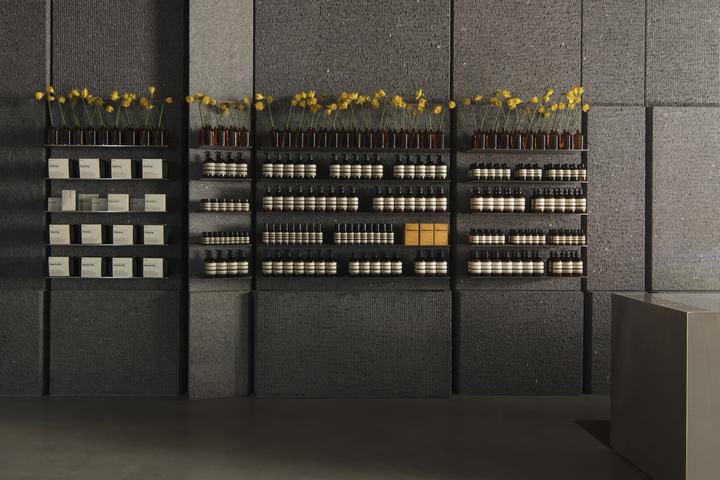 伊索皮特街是悉尼精神注入伊索的氛围和使命的结果,其中包括创造诚实的产品,在商店销售,反映他们的位置,社区和环境的背景。伊索皮特街的内部空间宁静祥和,让游客有一种宁静和安心的感觉。设计过程始于理解邦迪海滩海岸和滨水区的精神与中央商务区的活力之间的关系。一个巨大的花岗岩结构包围了砂岩建筑的内部,向克里斯托和珍妮-克劳德1968-9年的海岸线致敬,这使得小湾的砂岩悬崖成为一个戏剧化的月球景观。伊索悉尼将海岸悬崖的壮丽和宁静带给繁华的市中心环境。