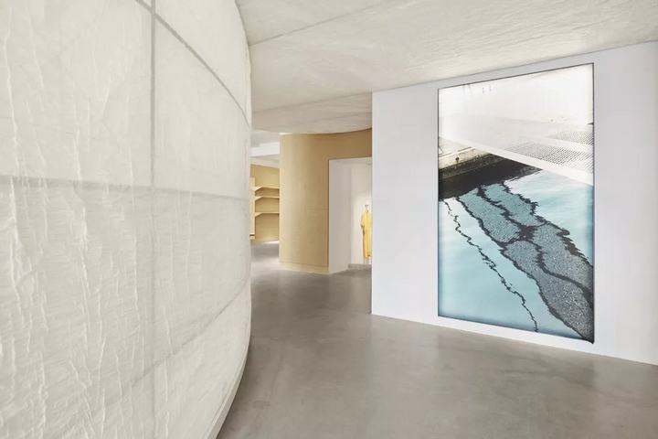 这家公司又一次改变了发展方向,截至目前,奥斯陆市中心的一家旗舰店和奥斯陆市郊全新的总部都已开业。毫不奇怪,霍尔茨韦勒的新零售空间,其第三,是另一个建筑声明,这是一个时装品牌与著名的建筑实践斯诺赫塔合作。这家商店位于19世纪晚期埃克曼&史密斯建筑事务所建造的一座相当宏伟的建筑的底层。酒店经过全面重新开发,具有现代低调的美学风格,完全符合Holzweiler的品牌价值观。购物者进入商店后,会经过一条由纸张制成的弯曲通道,直接通向商店的中心。在这里,一间用手工芥末色瓷砖粉刷的房间形成了精心布置的服装的背景。