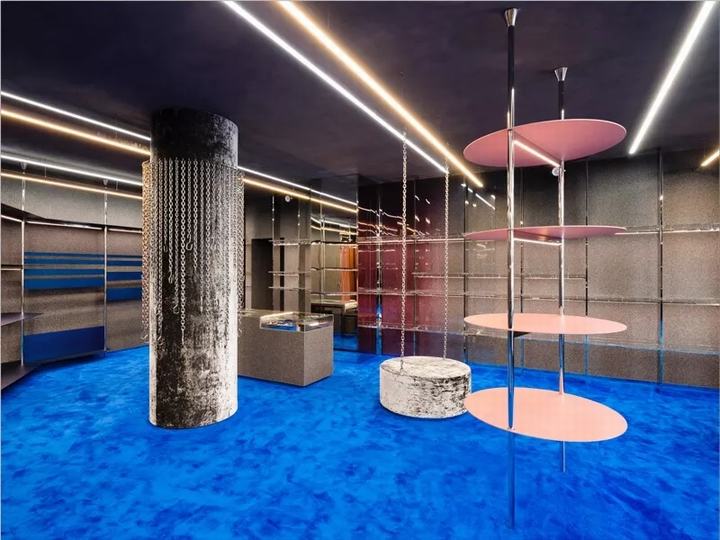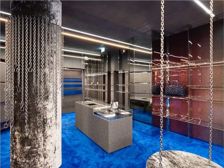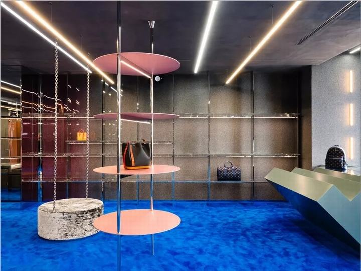 可以说,自从去年德克舍恩贝格(dirk schónberger)接手mcm的创意王国以来,这个有着德国血统的韩国奢侈品牌完全重新在全球时尚高层中占据了一席之地。这家公司在2005年被总部位于首尔的Sungjoo集团抢购一空,现在已经看到了许多改变,包括在零售业的努力。与奢侈品行业的自我识别同行类似,mcm的实体店已经成为品牌体验的重要工具,它已着手在全球主要购物目的地开辟新的零售空间。在舍恩伯格的创意监督下,该品牌的旗舰店扩张速度加快,继在柏林、洛杉矶和东京推出之后,MCM又回到了摇篮,在慕尼黑的黄金英里奢侈品上开设了一个前哨站。占地168平方米。(1808平方英尺)地下建筑空间在19世纪末建筑师弗里德里希Burrkin沿着Maximilanstrasse,它看到一个鲜明的对比室内设计由柏林为基础的建筑实践Gonzalez Haase。为未来的mcm商店创建一个分类基准,所选的设计代码以几何图形为特征,参考了20世纪70年代,这个时代催生了mcm品牌。通过使用曲线、三角形、矩形和圆形,零售空间获得了不同的部分,同时,这些部分也重叠在一起,形成了坚实的视觉衔接。