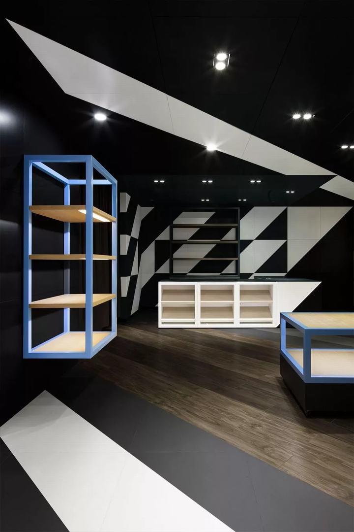 布局采用全模块化的地板、墙壁和天花板系统,很容易适应未来的零售商店。然后根据空间大小增加或减少多功能结构,并将其放置在不同的方向。模块化家具件是快速和易于组装,同时提供高水平的灵活性和变化。展示柜的高度不同,方便消费者比较产品,而背景中的单色墙则有助于让商品脱颖而出。