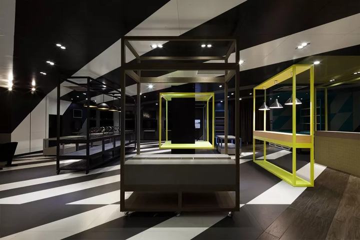 TCL专卖店还设有“Fish-eye”咖啡厅,其特色是木质材料和霓虹绿的对比。游客可以放松一下,坐在靠窗的座位上,鼓励他们自发地停下来。