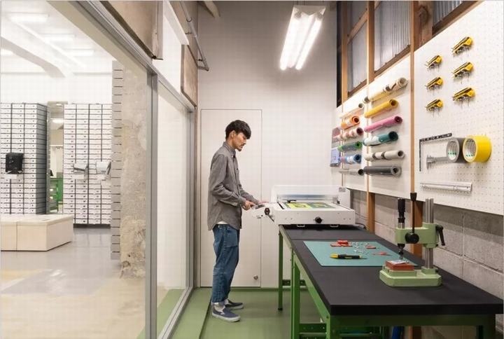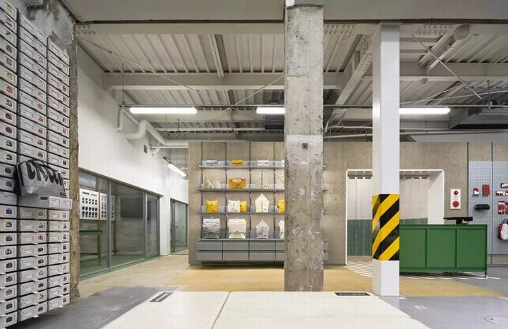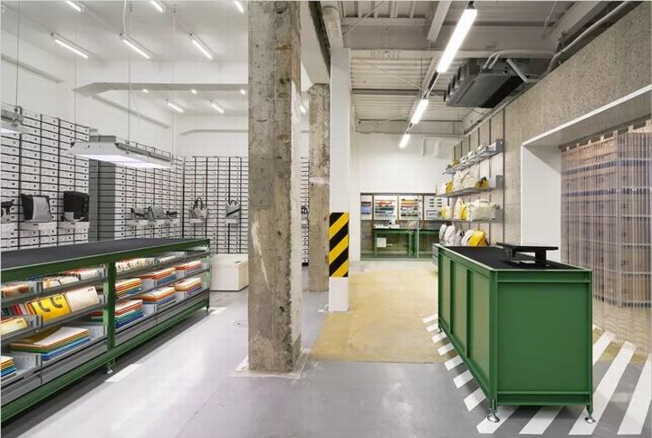 鉴于商店的庞大规模,它已完全按照公司位于苏黎世郊区的总部的工业物流仓库进行了完全建模。该设置通过其标志性存储系统与众多抽屉(靠侧面和墙壁排列)固定在一起。坚固,带架子的绿色金属桌占据了中心位置,与相匹配的销售柜台和正对面的壁挂式货架配对。主要零售区位于一间完善的车间旁,在那儿,购物者可以沉迷于DIY手工艺品。说到篷布,新的FREITAG商店存有大约1,100个一次性一次性回收袋和配件。