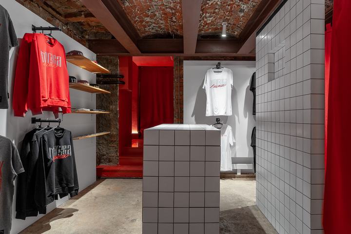 (Crazy North)是莫斯科斯巴达克(Moscow Spartak)球迷们的年轻服装品牌。直到最近,这个品牌还只有一家网上商店,但业主在12月决定邀请他们的老朋友,MAST工作室Vladislav Gaiduk和Vasily Korotkov的建筑师来做零售店铺,并为其量身定制一个专属的售卖空间。