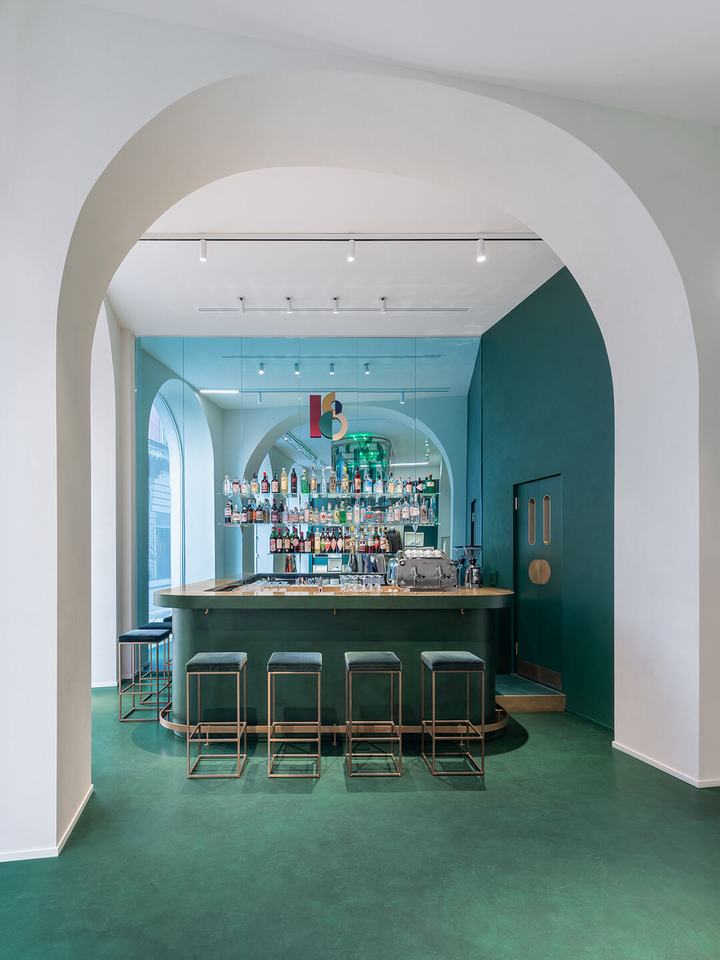 下班后拿起一杯金巴利(Campari)雪碧(spritz),你就能看到商店的内部在绿松石色的镜子里反射出来,镜子支撑着铺着黄铜的吧台展示窗口。