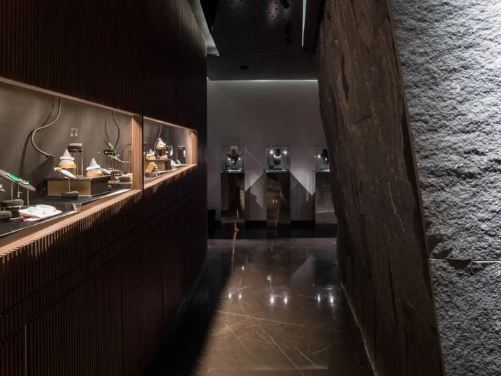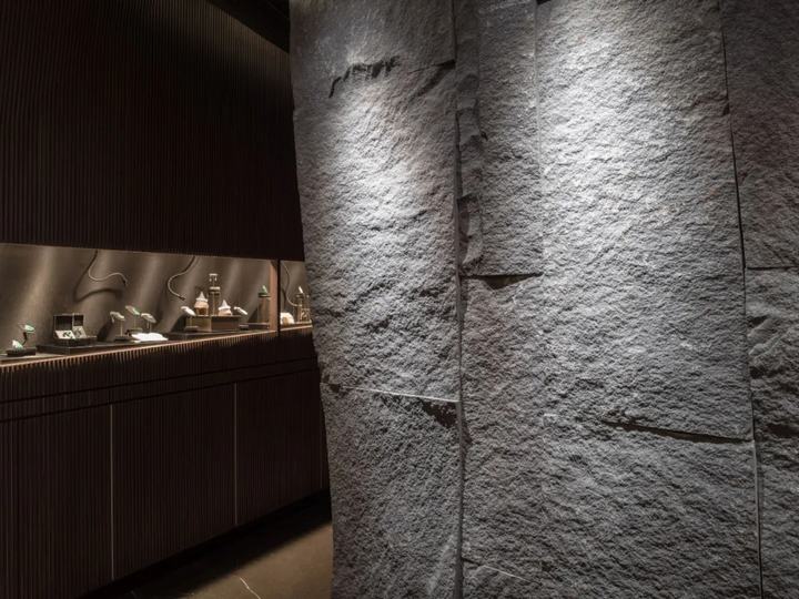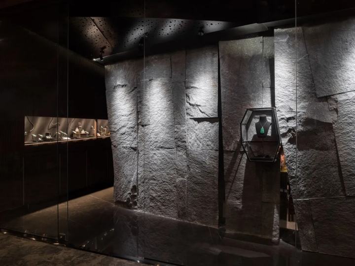 宝石是天然开采的,非常有价值。在人类对自然的探索和利用过程中,困难、意外、机遇无处不在。有两个设计概念,一个是基于商业战略,另一个是基于建筑空间和材料逻辑。我们的重点是如何从建筑师的角度,使室内装饰成为建筑空间和材料的语言。