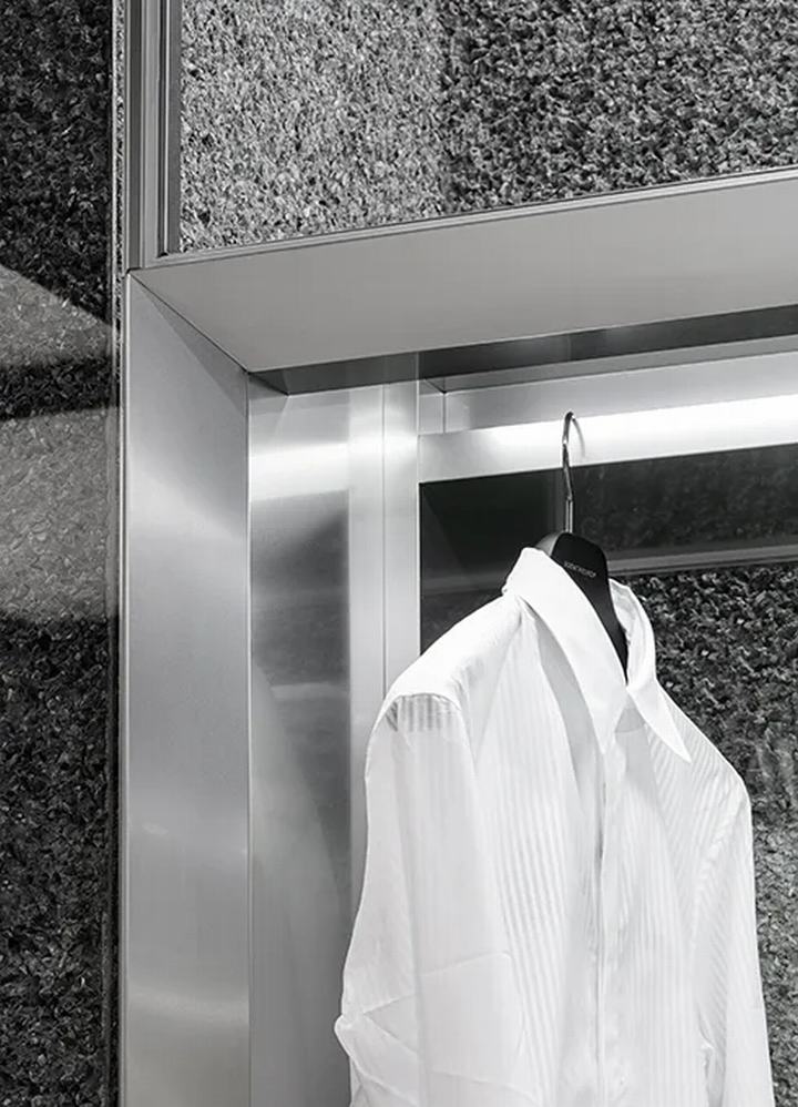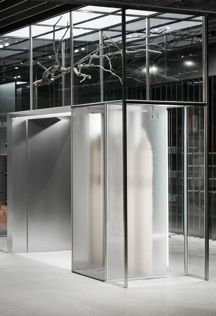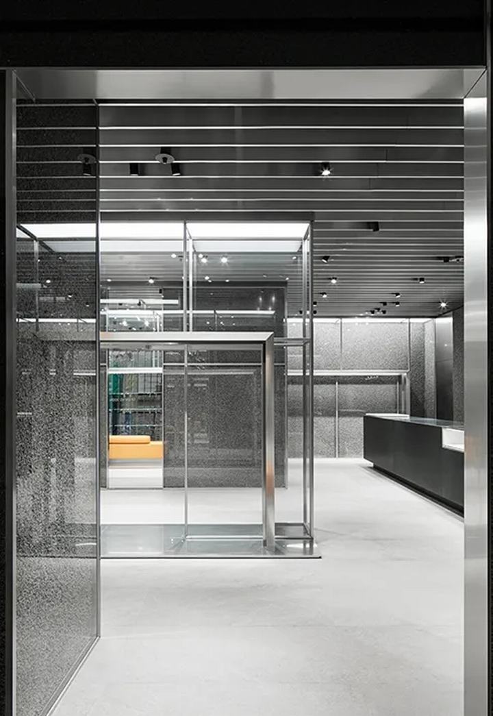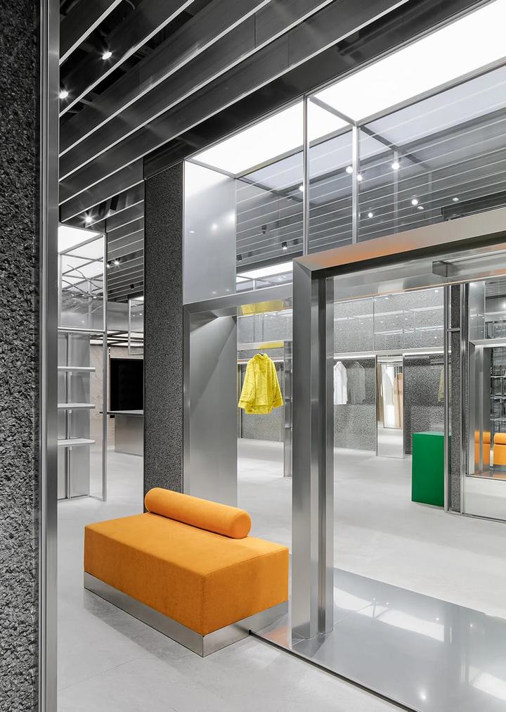 以前,设计导向的橱窗展示已经成为吸引顾客进入商店的主要方法,而WGNB则将商店作为一个概念空间,将敬畏和体验置于产品之上。在稀疏的金属环境中,几乎看不到服装,这种环境的目的是让顾客迷失方向,让他们不确定自己身处什么样的空间。钢框架取代了标准的吊杆和架子,偶尔也会出现一些服装,成为值得欣赏的珍贵艺术品。去除衣架和仓库有效地扭曲了时尚与艺术之间的界限。