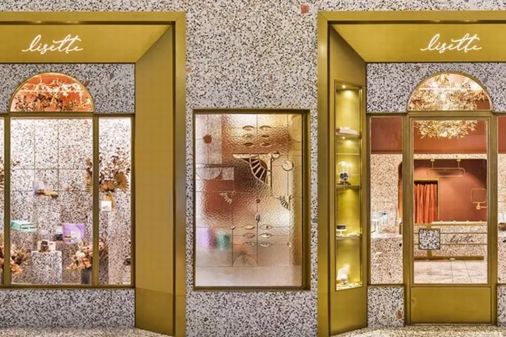 Nēowe选择黄铜框架和彩色玻璃作为前立面,营造出打破周围公共区域平凡外观的氛围。该品牌的口号是“罪恶的快乐”,由玛瑙大理石制成,欢迎客人。室内空间以装饰艺术元素和优雅的设计手法为主。黄铜和水磨石材料通过缠绕整个卷提供完整性。