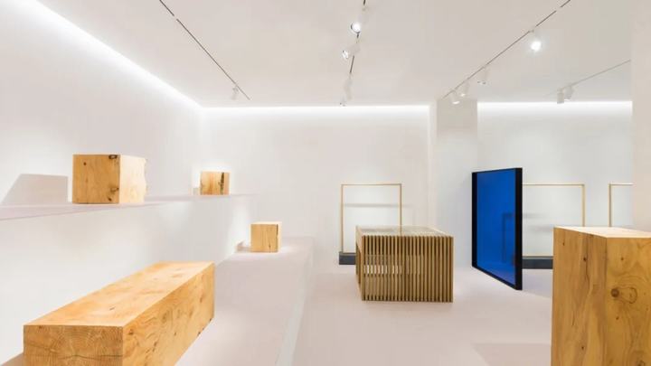 一开始,工作室将270平方米的商店——以前是一个黑暗、拥挤的办公室——全部漆成白色。然后,空间被一系列木材或黑色金属框架松散地分隔开,其中一些框架覆盖着钴蓝色的玻璃。