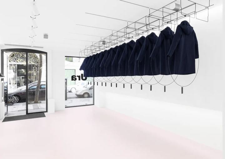 巴斯特拉解释说:“我们有机会搬来超过两吨重的石头(用于拍摄电影),其中一些用于拍摄和竞选图片,以及装饰新商店。“(大理石)作品将不断变化,用图形元素和每个活动的服装进行转换。”楼上的衣服挂在天花板上的细铁丝栏杆上,而穿着衣服的人体模特则被放在商店地下室的两层舞台上。