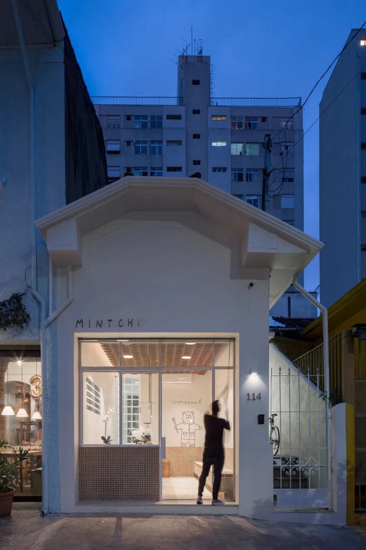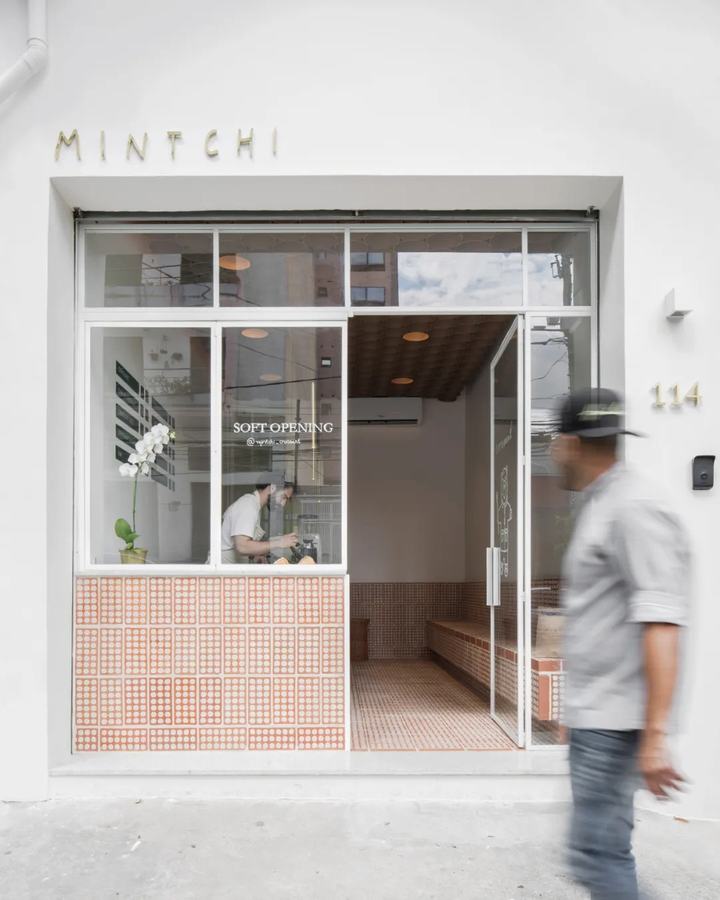 Mintchi Croissant餐厅于2019年开业。在那之前,这座建筑被用作车库。这家店的前脸是玻璃的,可以面向街道,鼓励人们进来坐下。金牛角面包陈列在柜台上定制的黄铜盘子上。