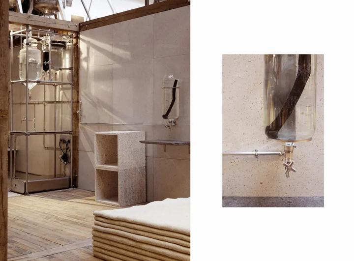 但是这些水从哪里来?去哪儿了 这些问题一直是这个酒店客房概念的核心,ciguë旨在通过该概念来揭示已经存在的解决方案,当这些解决方案放在一起时,会形成一个循环,几乎没有任何损失,一切都将被回收或改造。故意将房间的设计还原为最简单的表达方式。一种可拆卸的实心橡木“骨架”,由大部分回收的天然材料制成的实验平台,为一系列系统提供了平台,这些系统可以节省标准酒店房间通常消耗的70%的水。