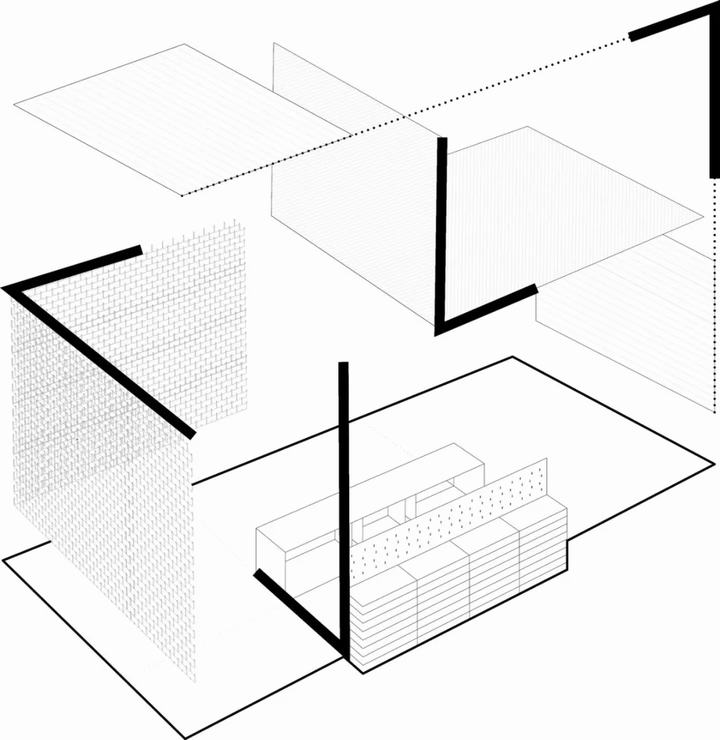现有结构被解构成其组件,并且将所得的八个垂直和水平表面分为四对表面,这些表面由不同的材料组成并具有明显不同的操作,所有这些都创建了一个可解析的,易于识别的功能空间。