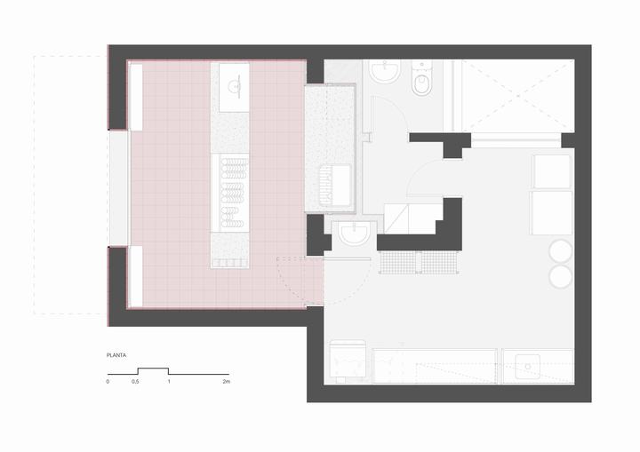 我们选择了液压瓷砖,一种手工制作的材料,是因为其来自工艺生产的不规则性与饼干形成了概念上的联系。另外,颜色也可以选择不同:瓷砖为粉红色,颜色更甜。
