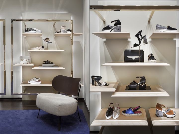 这家商店的设计由瑞典建筑师ChristianHalleröd创造,通过借鉴19世纪维也纳分离运动的线索,认可了该建筑的历史建筑特色,从而产生了清晰的图形强调和大胆使用天然材料的效果。家具非常现代,包括时尚的金属衣架和搁架,以及定制的座椅和以醒目的黑白图案装饰的陈列架。新的Totême店中店提供经过编辑的精选季节性产品,标志性服装,鞋子和配饰。