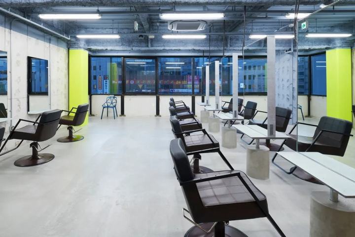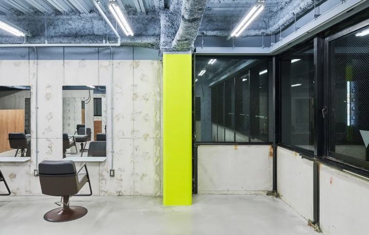 日本设计师松本直哉设计的位于大阪一栋汇聚了很多商家的大楼的发廊店,发廊位于大楼的五层。