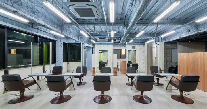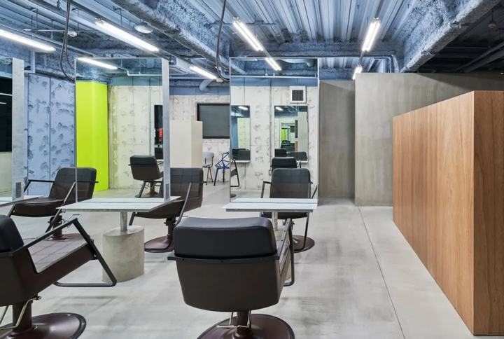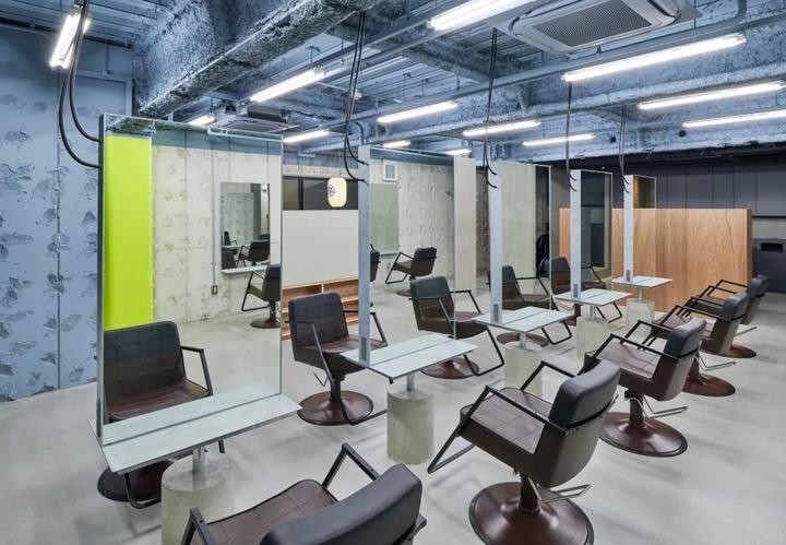 该沙龙以“低价,优质,快捷”为品牌理念,在43平方米(460平方英尺)的空间内设有13个理发工位和4个洗发工位。其流畅的流动规划和“原汁原味”的空间构成特点,清晰地定义了沙龙空间概念。