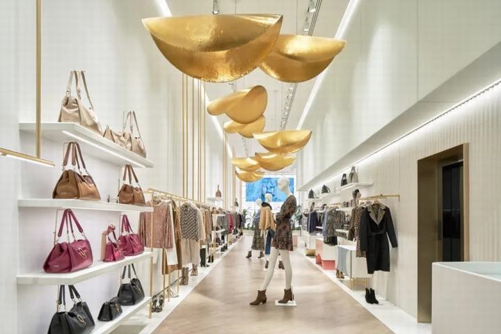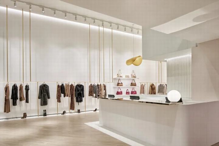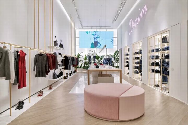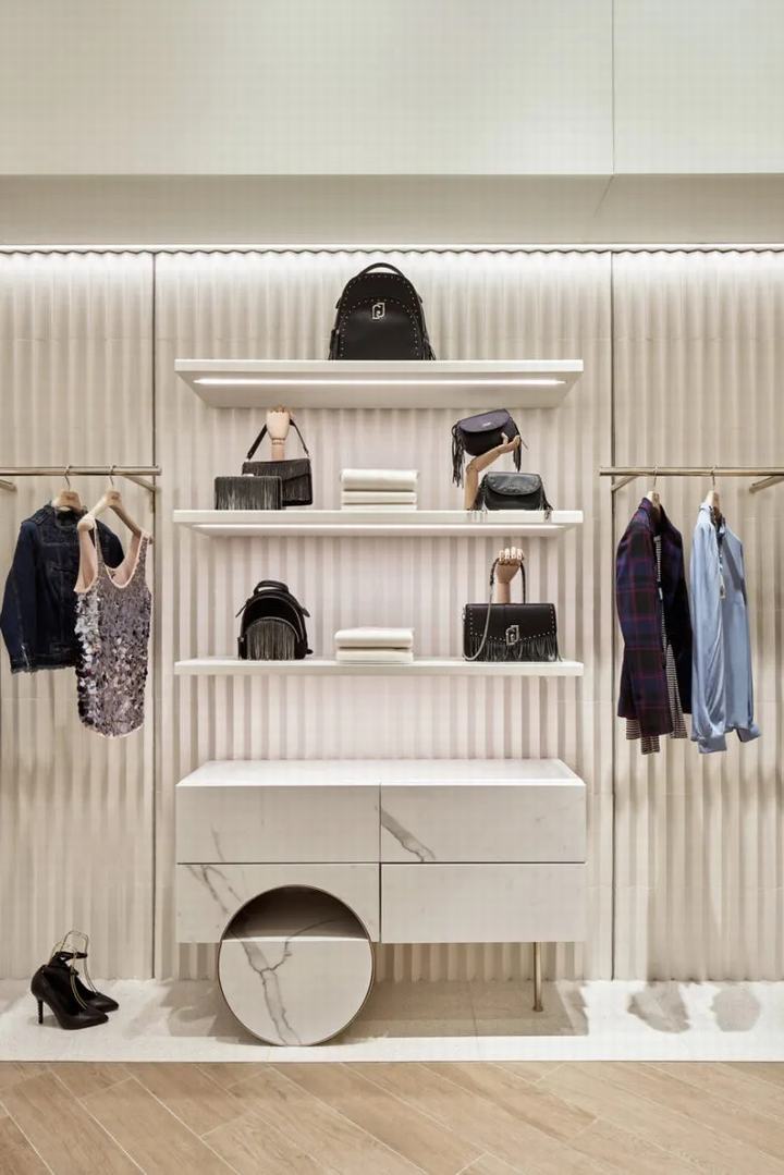 这种节奏感的运动将顾客的视线带到商店后面的墙壁上,其特点是有一个背光窗口,给人一种外窗的感觉,能够创造一个场景背景。